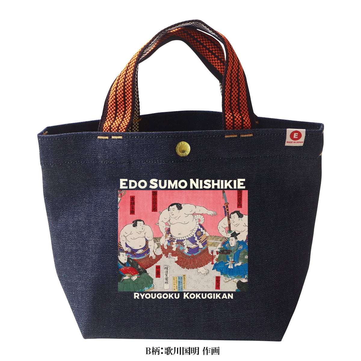 江戸相撲錦絵×江坂ジーンズ 浮世絵 日本製 オレンジ取手 デニムトートバッグ made in Japan 日本相撲協会承認