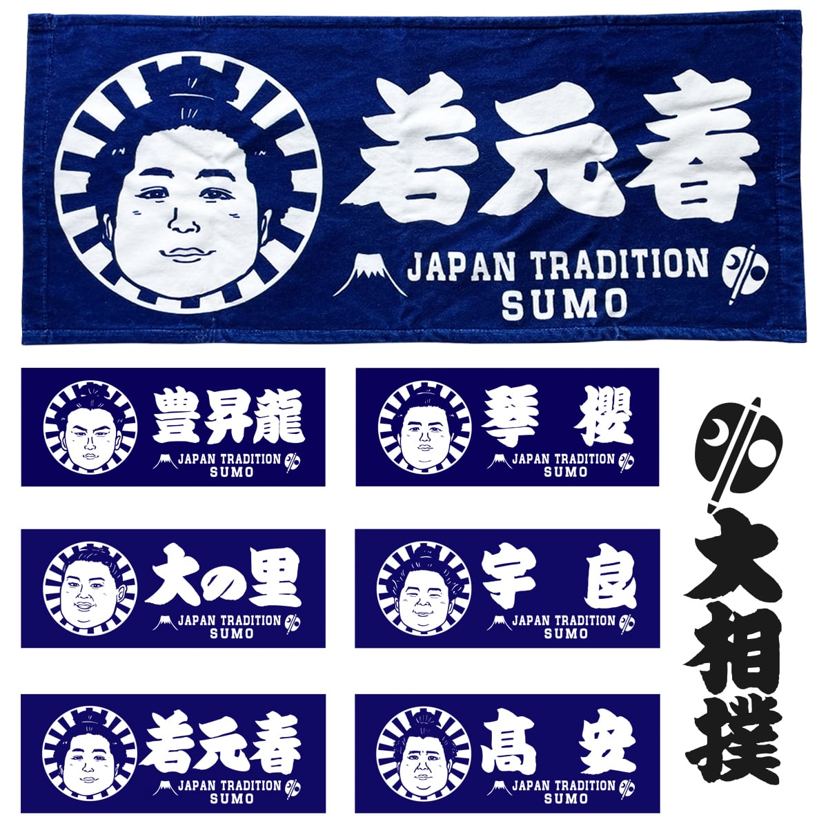 【日本相撲協会承認】唯一無二の 大相撲・力士イラスト 応援フェイスタオル 綿100% 日本相撲協会承認