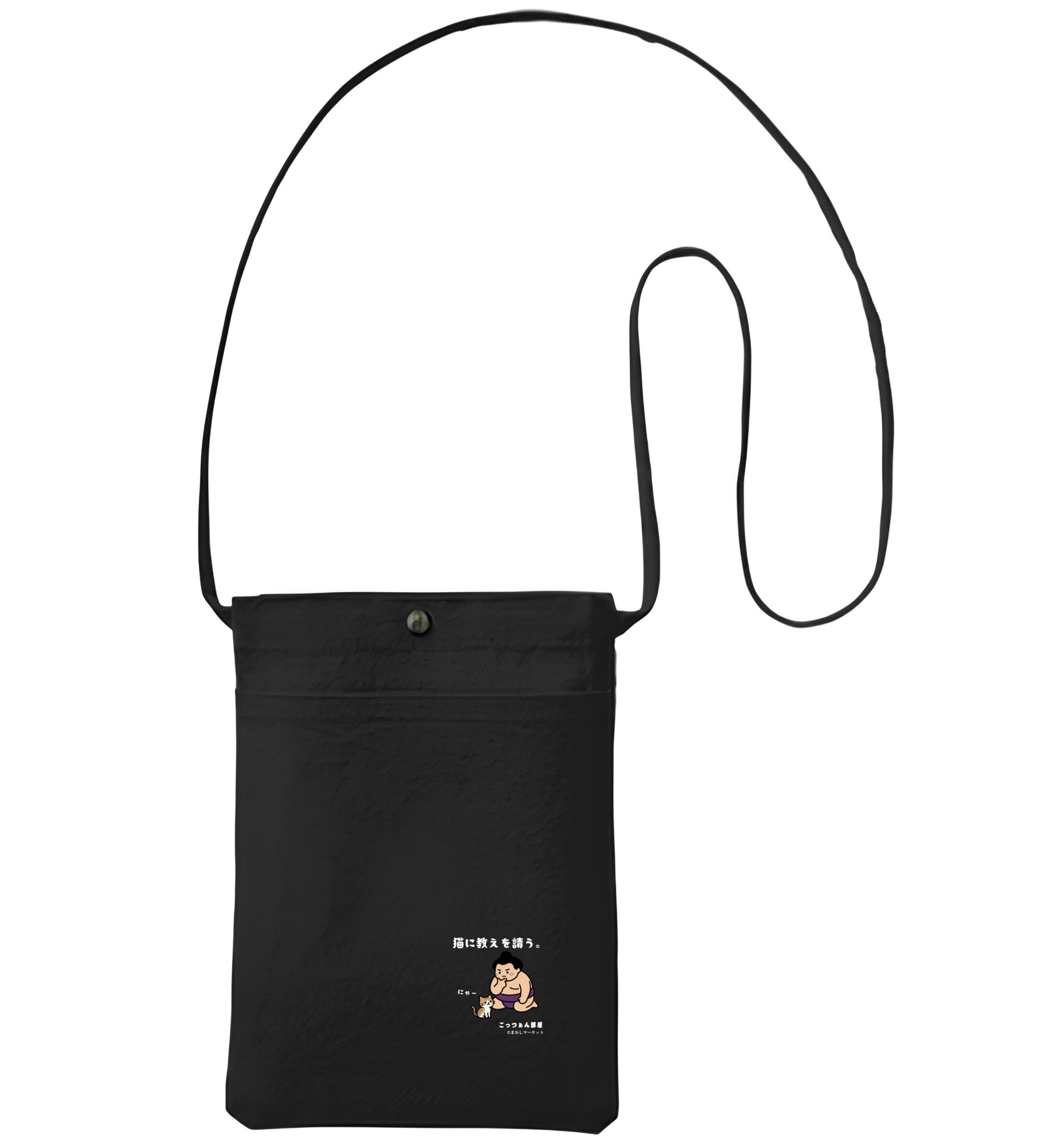 猫と力士のサコッシュ「力士と猫」帆布バッグ【シュールで可愛い】相撲 グッズ ごっつぁん部屋 <ブラック>